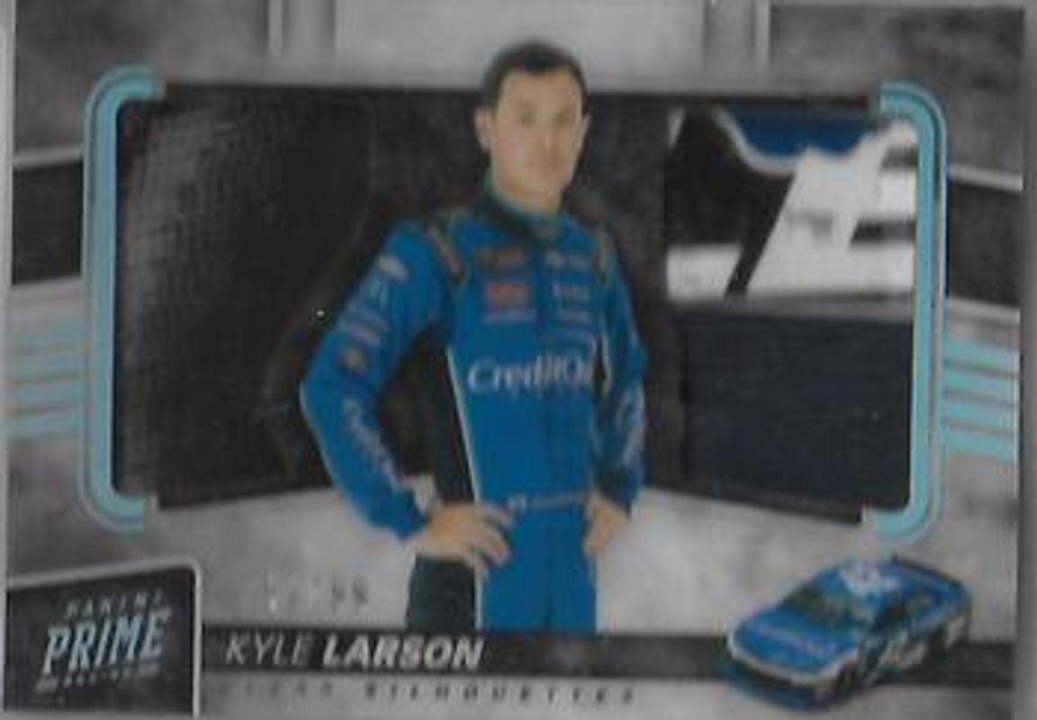 The Kyle Larson 2018 Prime NASCAR #CS-KL Clear Silhouettes Dual /99 card is 1 of 109 Kyle Larson's card variations in the 2018 Prime NASCAR set being tracked by Sports Card Investor, including #44 Base /50, #77 Base /50, #10 Base /50, #10 Holo Gold /25, and #44 Holo Gold /25.