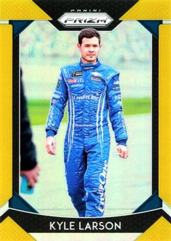 The Kyle Larson 2019 Prizm NASCAR #27 Gold /10 card is 1 of 52 Kyle Larson's card variations in the 2019 Prizm NASCAR set being tracked by Sports Card Investor, including #27 Base, #80 Base, #80 Camo, #27 Camo, and #27 Purple Flash (Hobby).