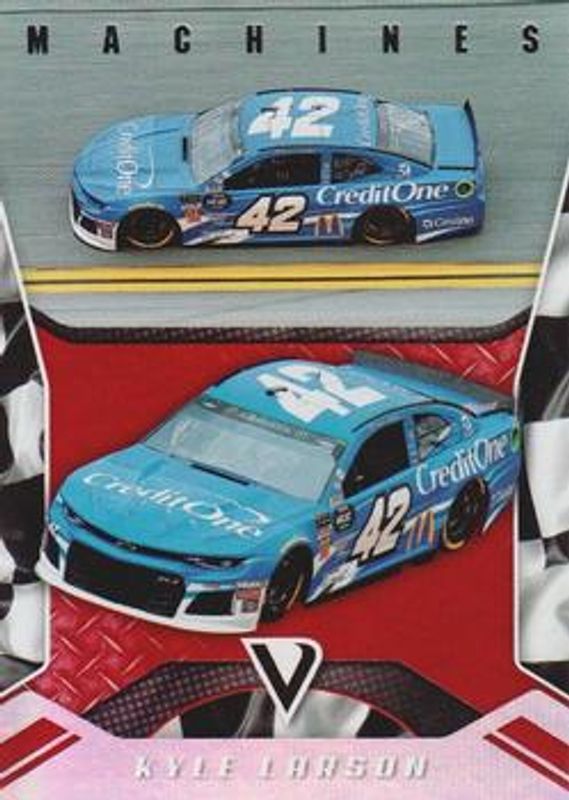 The Kyle Larson 2019 Victory Lane NASCAR #M13 Machines card is 1 of 70 Kyle Larson's card variations in the 2019 Victory Lane NASCAR set being tracked by Sports Card Investor, including #27 Base, #93 Base, #27 Gold /25, #93 Gold /25, and #93 Black /1.