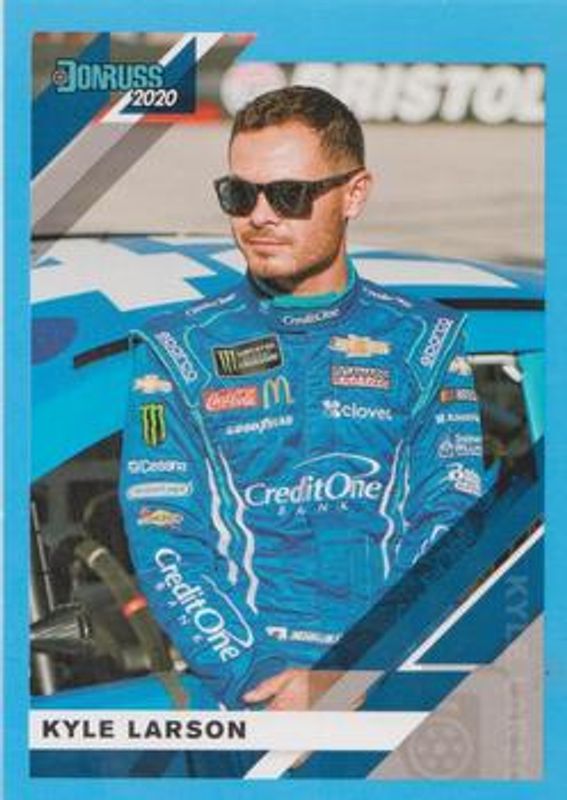 The Kyle Larson 2020 Donruss NASCAR #43 Carolina Blue card is 1 of 95 Kyle Larson's card variations in the 2020 Donruss NASCAR set being tracked by Sports Card Investor, including #110 Base, #43 Base, #162 Base, #13 Base, and #110 Carolina Blue.