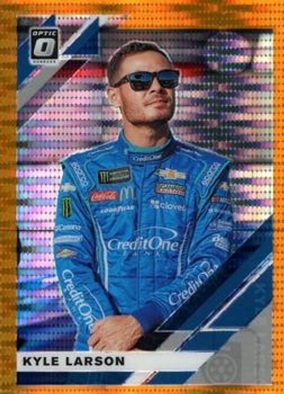 The Kyle Larson 2020 Donruss NASCAR #25 Optic Orange Pulsar card is 1 of 95 Kyle Larson's card variations in the 2020 Donruss NASCAR set being tracked by Sports Card Investor, including #110 Base, #43 Base, #162 Base, #13 Base, and #43 Carolina Blue.
