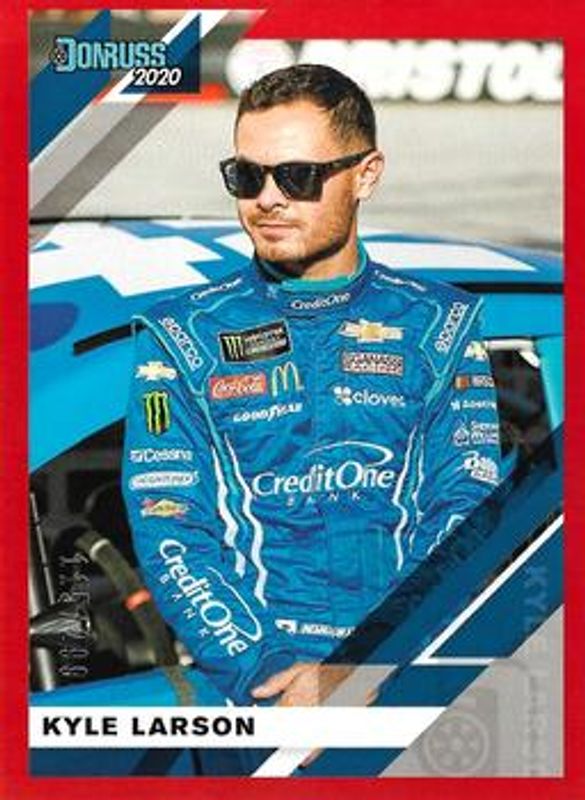 The Kyle Larson 2020 Donruss NASCAR #43 Red /299 card is 1 of 95 Kyle Larson's card variations in the 2020 Donruss NASCAR set being tracked by Sports Card Investor, including #110 Base, #43 Base, #162 Base, #13 Base, and #43 Carolina Blue.