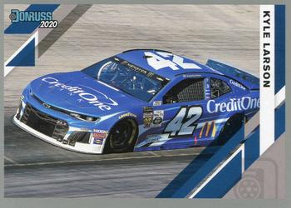 The Kyle Larson 2020 Donruss NASCAR #110 Silver card is 1 of 95 Kyle Larson's card variations in the 2020 Donruss NASCAR set being tracked by Sports Card Investor, including #110 Base, #43 Base, #162 Base, #13 Base, and #43 Carolina Blue.