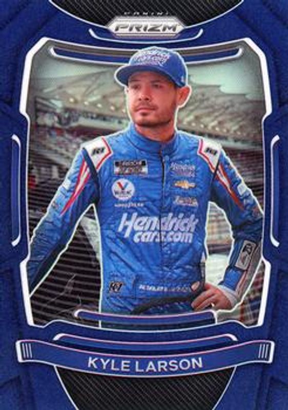 The Kyle Larson 2021 Prizm NASCAR #4 Blue card is 1 of 73 Kyle Larson's card variations in the 2021 Prizm NASCAR set being tracked by Sports Card Investor, including #4 Base, #69 Base, #69 Blue, #4 Hyper Blue & Carolina Blue, and #69 Hyper Blue & Carolina Blue.