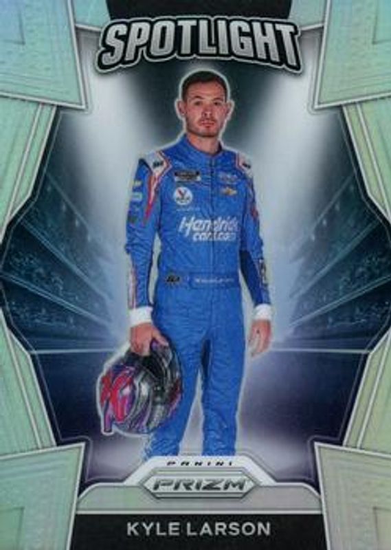 The Kyle Larson 2021 Prizm NASCAR #S10 Spotlight card is 1 of 73 Kyle Larson's card variations in the 2021 Prizm NASCAR set being tracked by Sports Card Investor, including #4 Base, #69 Base, #4 Blue, #69 Blue, and #4 Hyper Blue & Carolina Blue.