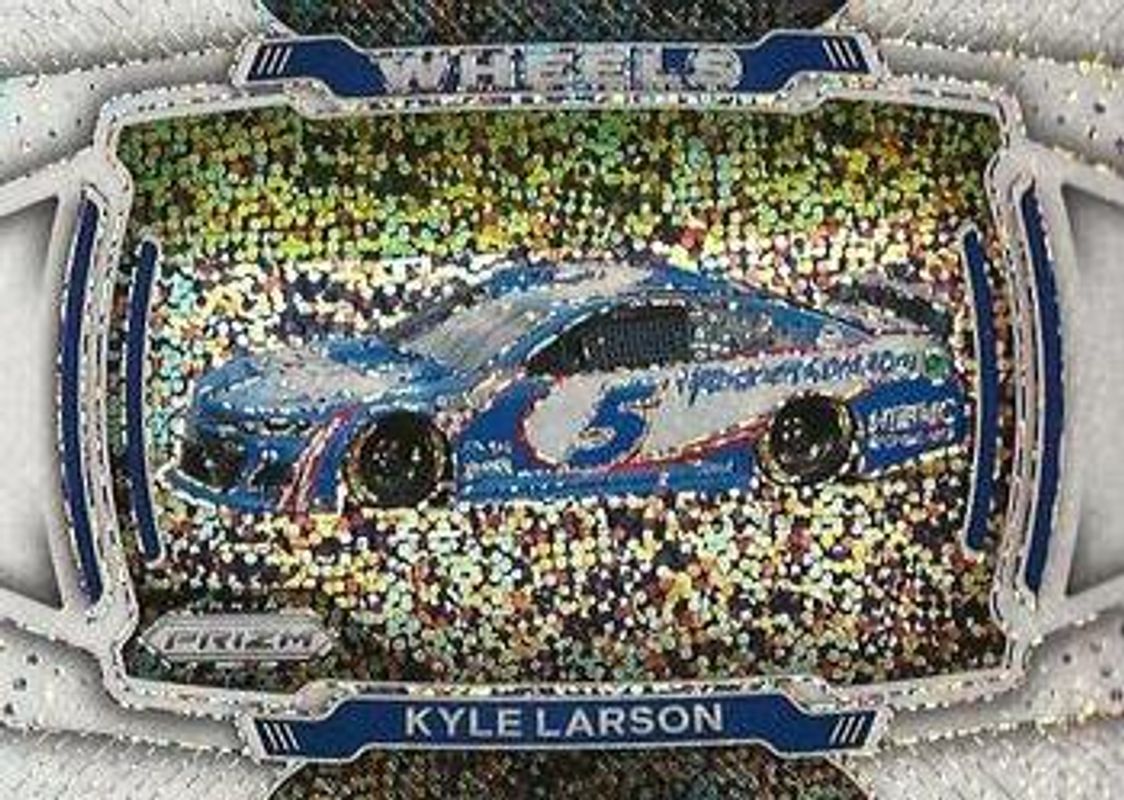 The Kyle Larson 2021 Prizm NASCAR #69 White Sparkle card is 1 of 73 Kyle Larson's card variations in the 2021 Prizm NASCAR set being tracked by Sports Card Investor, including #4 Base, #69 Base, #4 Blue, #69 Blue, and #4 Hyper Blue & Carolina Blue.