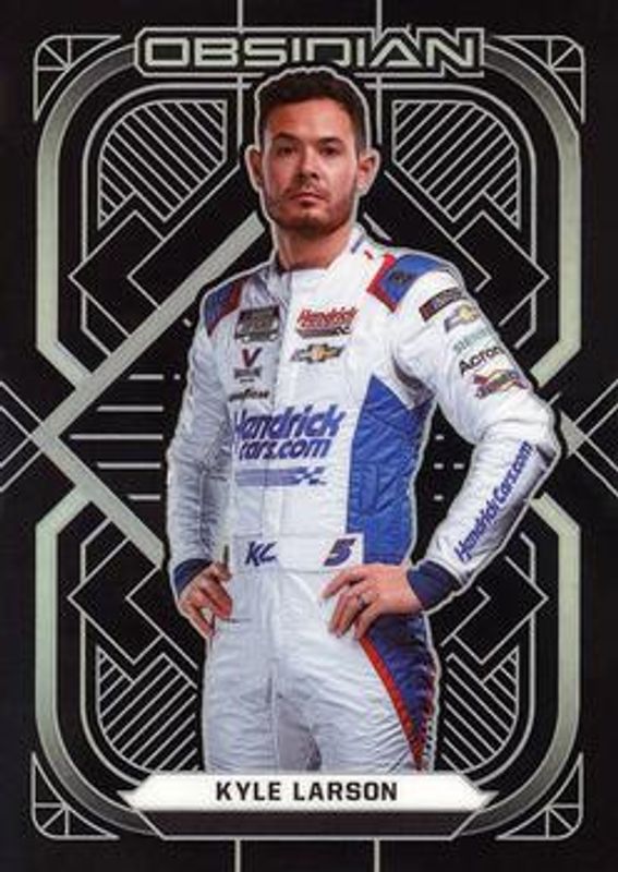 The Kyle Larson 2022 Chronicles NASCAR #1 Obsidian card is 1 of 164 Kyle Larson's card variations in the 2022 Chronicles NASCAR set being tracked by Sports Card Investor, including Black, Black Autographs, Black Green, Clearly Donruss, and Clear Vision.