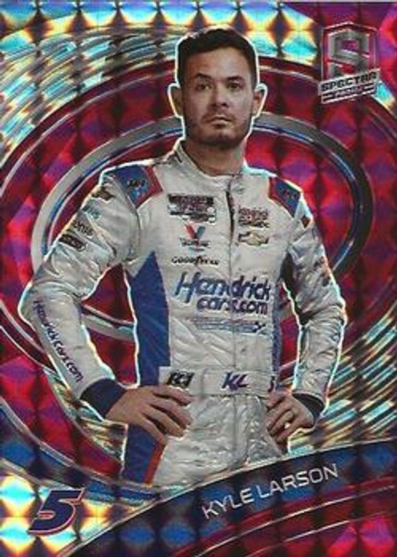 The Kyle Larson 2022 Chronicles NASCAR #6a Spectra Interstellar Red /49 card is 1 of 164 Kyle Larson's card variations in the 2022 Chronicles NASCAR set being tracked by Sports Card Investor, including Black, Black Autographs, Black Green, Clearly Donruss, and Clear Vision.
