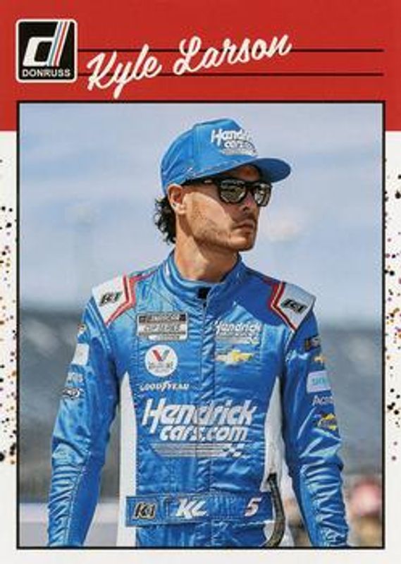 The Kyle Larson 2023 Donruss NASCAR #129 Base card is 1 of 157 Kyle Larson's card variations in the 2023 Donruss NASCAR set being tracked by Sports Card Investor, including #5 Base, #117 Base, #45 Base, #117 Carolina Blue, and #129 Carolina Blue.