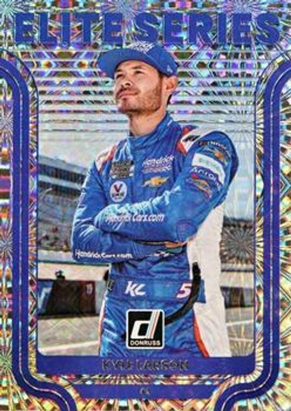 The Kyle Larson 2023 Donruss NASCAR #E5 Elite Series card is 1 of 157 Kyle Larson's card variations in the 2023 Donruss NASCAR set being tracked by Sports Card Investor, including #5 Base, #117 Base, #129 Base, #45 Base, and #117 Carolina Blue.