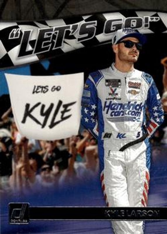The Kyle Larson 2023 Donruss NASCAR #LG-KL Let's Go card is 1 of 157 Kyle Larson's card variations in the 2023 Donruss NASCAR set being tracked by Sports Card Investor, including #5 Base, #117 Base, #129 Base, #45 Base, and #117 Carolina Blue.
