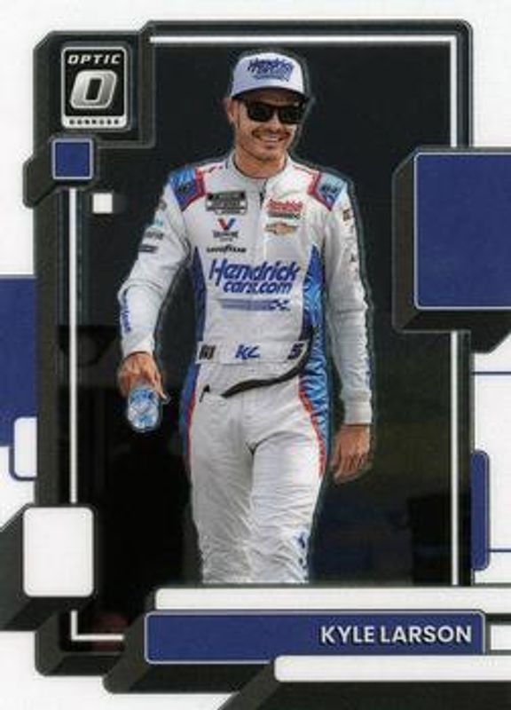 The Kyle Larson 2023 Donruss NASCAR #20 Optic card is 1 of 157 Kyle Larson's card variations in the 2023 Donruss NASCAR set being tracked by Sports Card Investor, including #5 Base, #117 Base, #129 Base, #45 Base, and #117 Carolina Blue.
