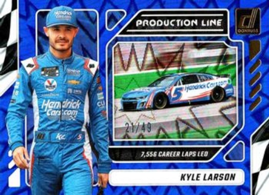 Kyle Larson 2024 Donruss NASCAR #7 Production Line Blue Xplosion /49 RAW Price Guide