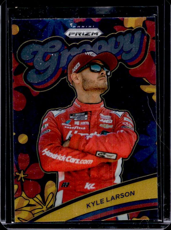 The Kyle Larson 2024 Prizm NASCAR #14 Groovy card is 1 of 98 Kyle Larson's card variations in the 2024 Prizm NASCAR set being tracked by Sports Card Investor, including Base, Blue Ice, Green, Green Ice, and Red Ice.