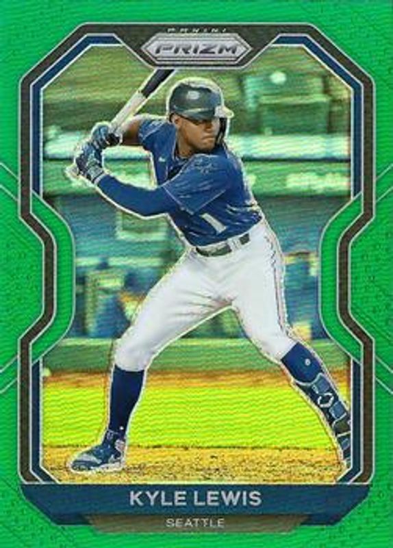 The Kyle Lewis 2021 Prizm #117 Green card is 1 of 93 Kyle Lewis' card variations in the 2021 Prizm set being tracked by Sports Card Investor, including Base, Blue, Blue Velocity, Carolina Blue, and Cosmic Haze.