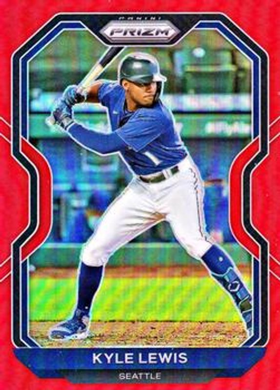 The Kyle Lewis 2021 Prizm #117 Red card is 1 of 93 Kyle Lewis' card variations in the 2021 Prizm set being tracked by Sports Card Investor, including Base, Blue, Blue Velocity, Carolina Blue, and Cosmic Haze.
