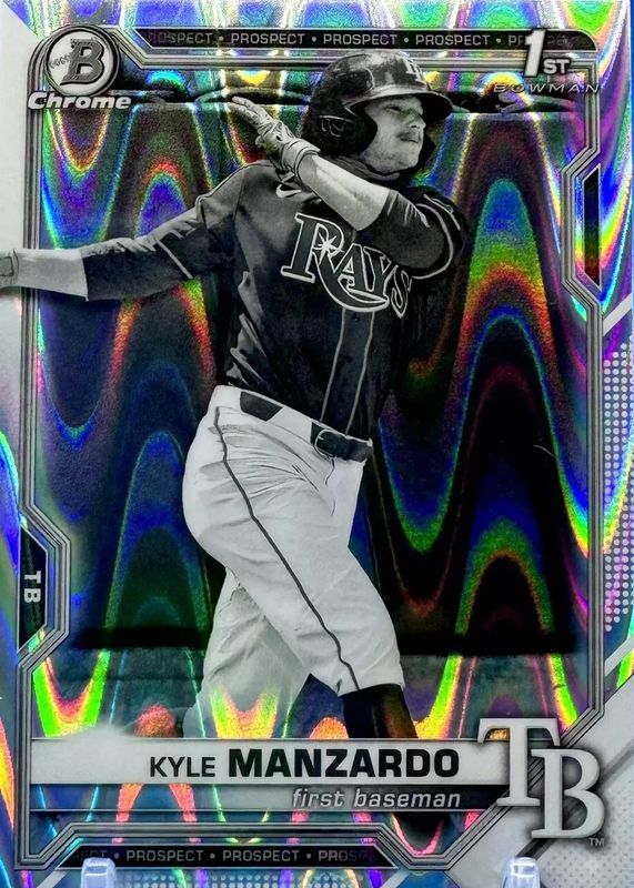 KYLE MANZARDO 2021 Bowman Chrome Draft 1st #191 Black & White RayWave Refractor
