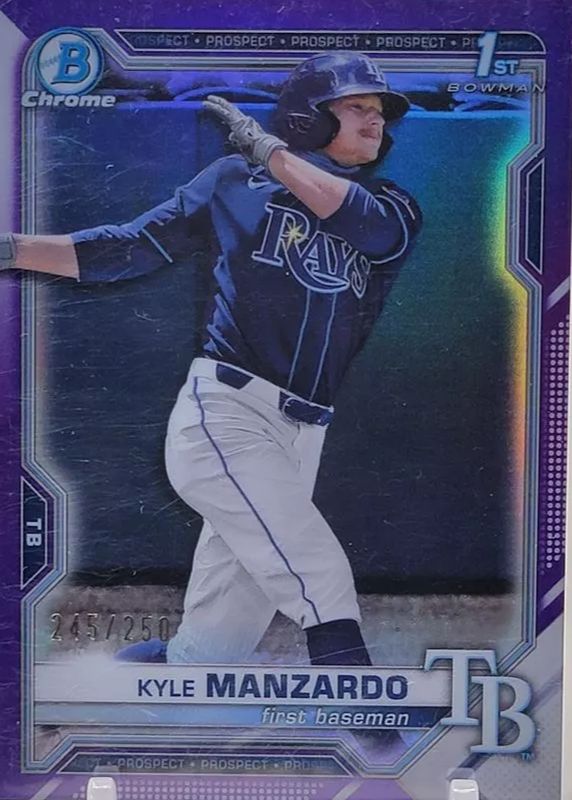 2021 BOWMAN CHROME DRAFT KYLE MANZARDO 174/250 PURPLE REFRACTOR 1ST RAYS SP