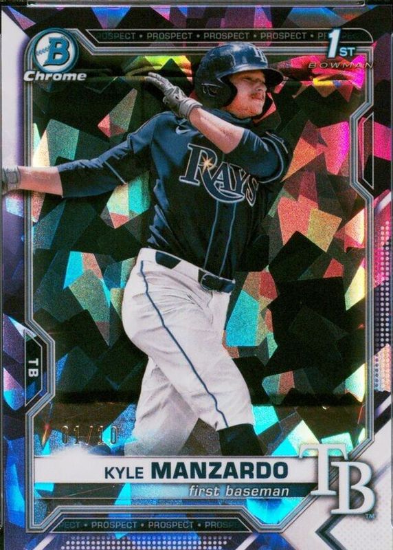 This card is 1 of 9 Kyle Manzardo's card variations in the 2021 Bowman Draft Sapphire Edition set being tracked by Sports Card Investor, including Chrome (1st), Chrome - Yellow /99 (1st), Chrome - Green /50 (1st), Chrome - Orange /25 (1st), and Chrome - Aqua /20 (1st).