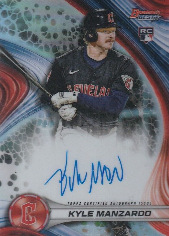The Kyle Manzardo 2024 Bowman's Best #B24-KM Best of 2024 Autographs - Refractor Rookie card in Raw condition has moved up $0.24 (+8.0%) in the last 30 days and was last sold for $3.25 .