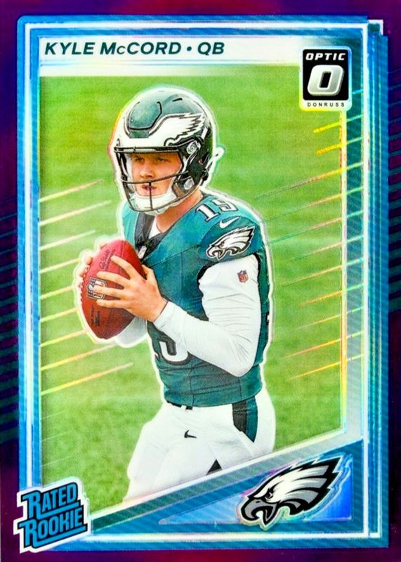 The Kyle McCord 2025 Donruss #325 Optic Preview - Purple /50 Rookie card in Raw condition has not changed in price in the last 30 days and was last sold for $2.00 .
