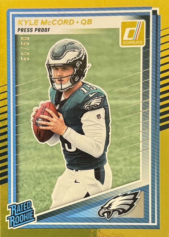 2025 Panini Donruss Kyle McCord Gold Press Proof Rated Rookie 50/50 RC Eagles
