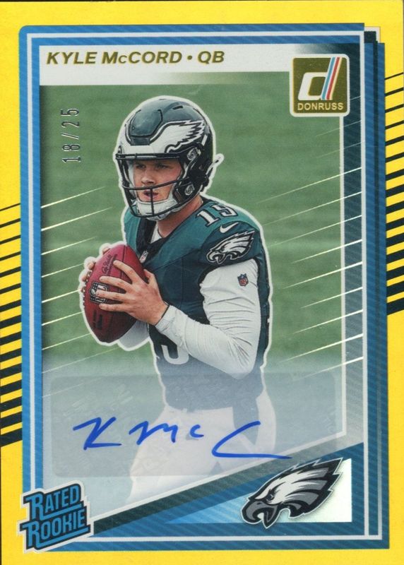2025 Panini Donruss Kyle McCord Gold Foil Auto /25 #325 Philadelphia Eagles RC