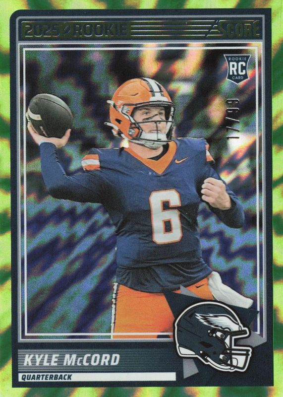 This card is 1 of 26 Kyle McCord's card variations in the 2025 Score set being tracked by Sports Card Investor, including Base, Gold, Green, Orange, and Purple.