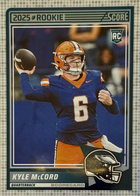 Kyle McCord 2025 Score Football RC Rookie #73 Philadelphia Eagles Scorecard SP