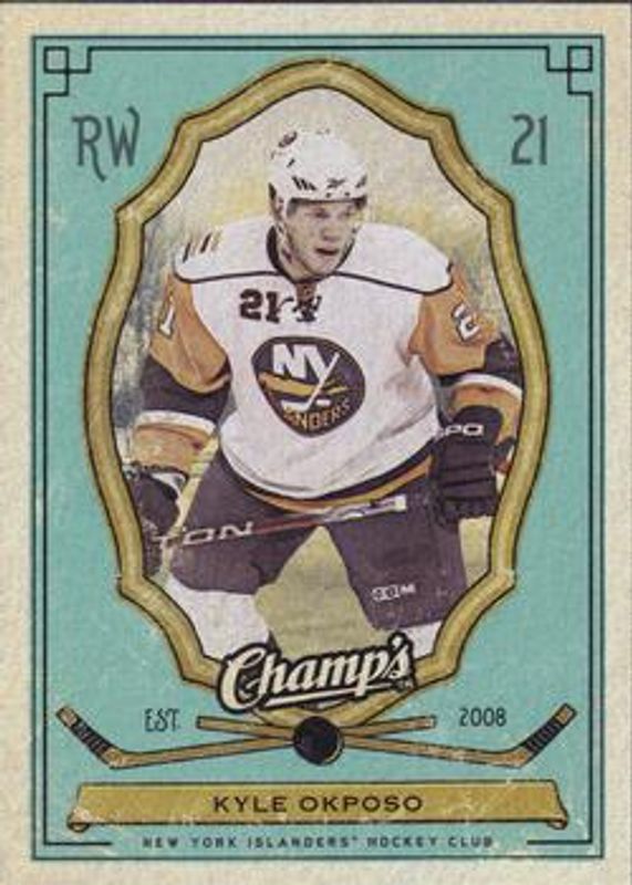 The Kyle Okposo 2009 Upper Deck Champ's #65 Green card is 1 of 10 Kyle Okposo's card variations in the 2009 Upper Deck Champ's set being tracked by Sports Card Investor, including #261 Base, #65 Base, #65 Animal Icons, #65 Red, and #65 Yellow.