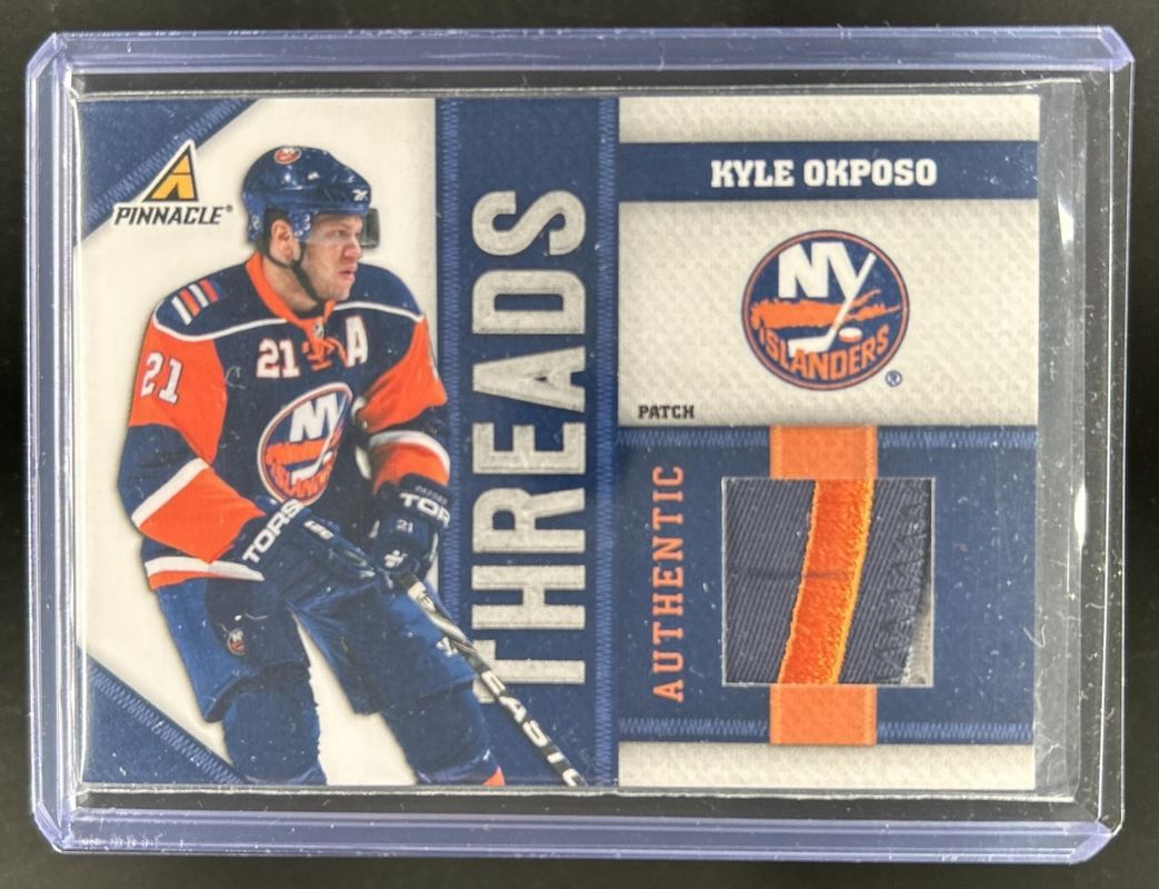 The Kyle Okposo 2010 Pinnacle #KO Threads Patches /10 card is 1 of 6 Kyle Okposo's card variations in the 2010 Pinnacle set being tracked by Sports Card Investor, including Base /299, Artists Proofs, Rink Collection, Threads /499, and Threads Prime /25.