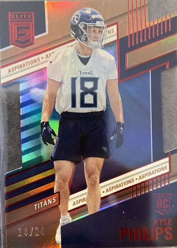 This card is 1 of 15 Kyle Philips' card variations in the 2022 Elite set being tracked by Sports Card Investor, including Base Rookie /999, Aspirations (/82), Green, Pink, and Status (/18).