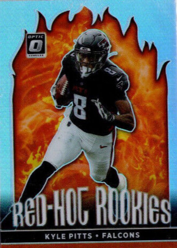 The Kyle Pitts 2021 Optic #RHR-6 Red Hot Rookies card in Raw condition has moved down -$1.12 (-56.3%) in the last 30 days and was last sold for $0.87 .
