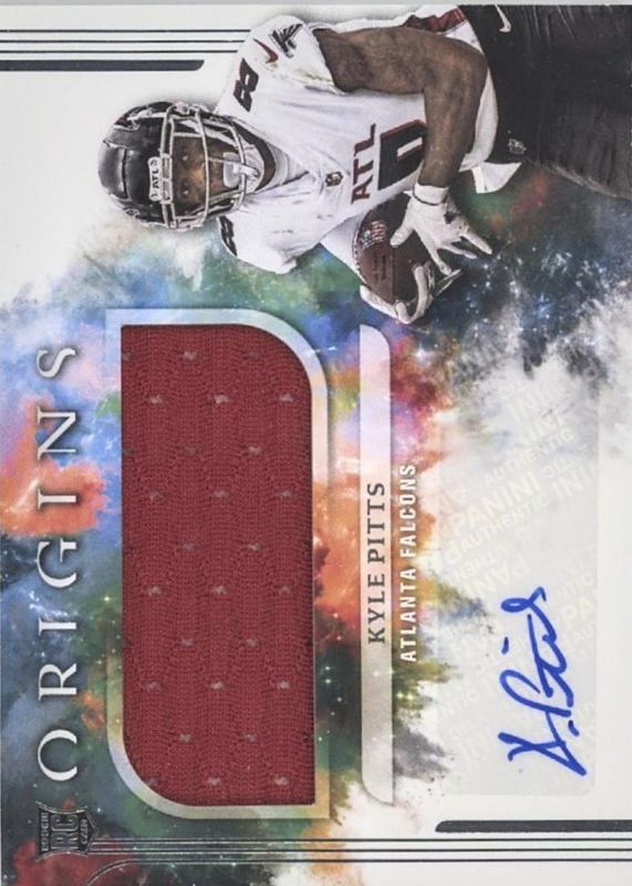 The Kyle Pitts 2021 Origins #160 Rookie Jumbo Jersey Autographs card in Raw condition has moved up $8.00 (+40.0%) in the last 30 days and was last sold for $28.00 .