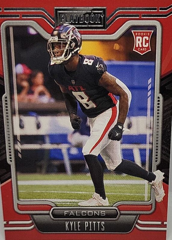 The Kyle Pitts 2021 Playbook #104 Base Rookie card in Raw condition has moved down -$0.18 (-12.1%) in the last 30 days and was last sold for $1.31 .