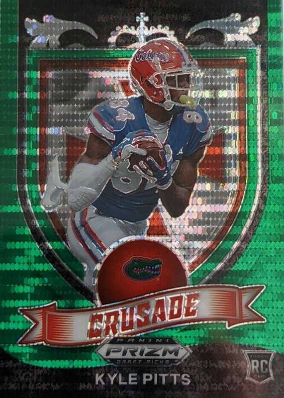 This card is 1 of 12 Kyle Pitts' card variations in the 2021 Prizm Draft Picks set being tracked by Sports Card Investor, including Base, Crusade, Crusade Green, Crusade Purple Wave, and Crusade Silver.