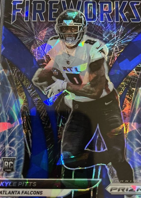 The Kyle Pitts 2021 Prizm #F-13 Fireworks - Blue Ice /99 Rookie card in Raw condition has not changed in price in the last 30 days and was last sold for $4.00 .