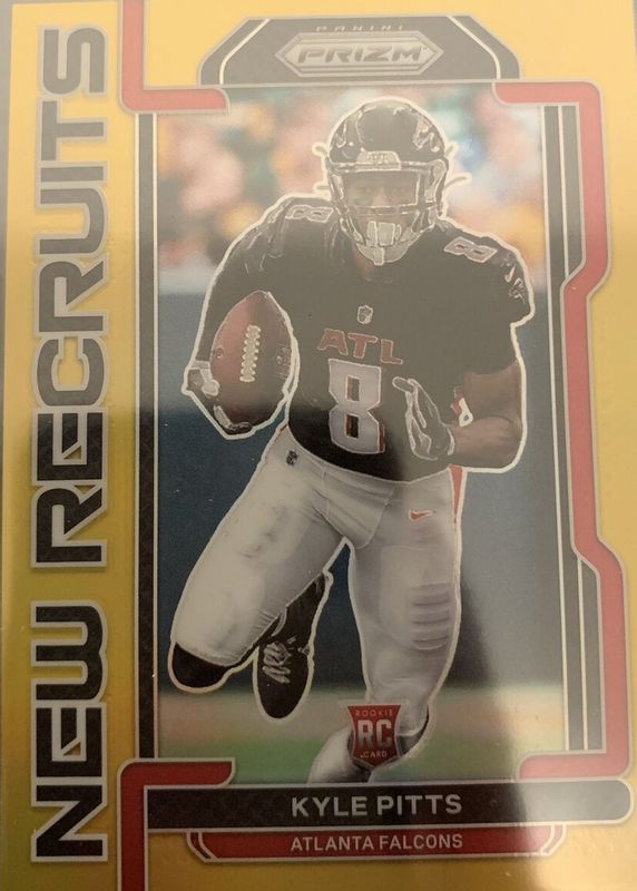 The Kyle Pitts 2021 Prizm #NR-10 New Recruits - Gold /10 Rookie card in Raw condition has not changed in price in the last 30 days and was last sold for $46.00 .