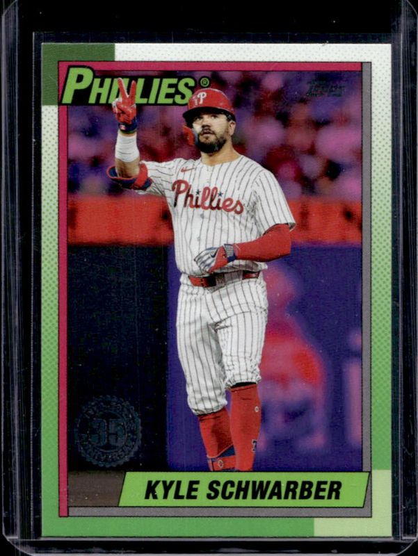 The Kyle Schwarber 2025 Topps #T90-31 1990 Topps Baseball - Pink card is 1 of 185 Kyle Schwarber's card variations in the 2025 Topps set being tracked by Sports Card Investor, including Base, Aqua Holo Foil, Diamante Foil, Holo Foil, and Pink Diamante Foil.