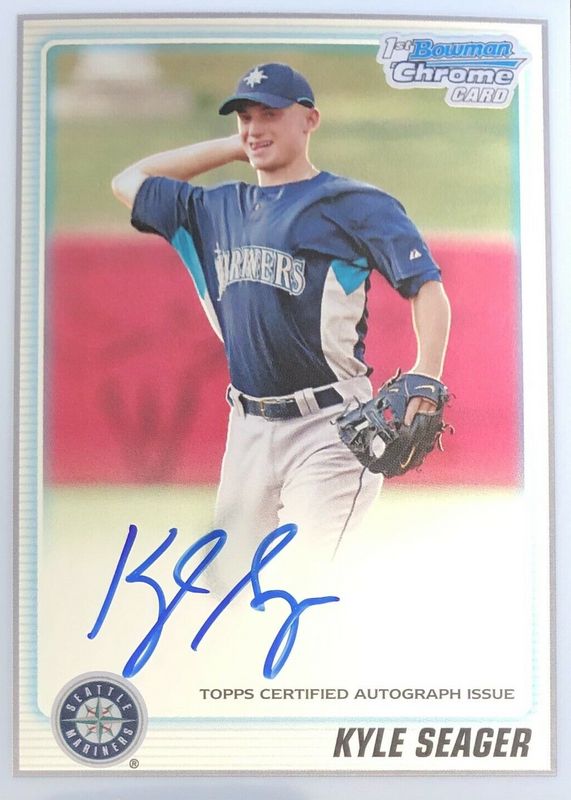 Kyle Seager's Baseball cards are available in at least 39 sets. Kyle Seager's biggest 7-day price movers are 2010 Bowman Chrome #BCP195 Prospect Auto (1st), 2011 Topps Update #US308 Base, and 2015 Topps Dynasty #AP-KS1 Base /10.