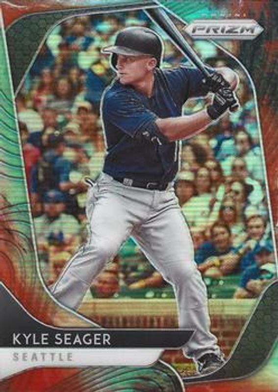 The Kyle Seager 2020 Prizm #17 Cosmic Haze card is 1 of 37 Kyle Seager's card variations in the 2020 Prizm set being tracked by Sports Card Investor, including Base, Blue, Carolina Blue, Green, and Pink.