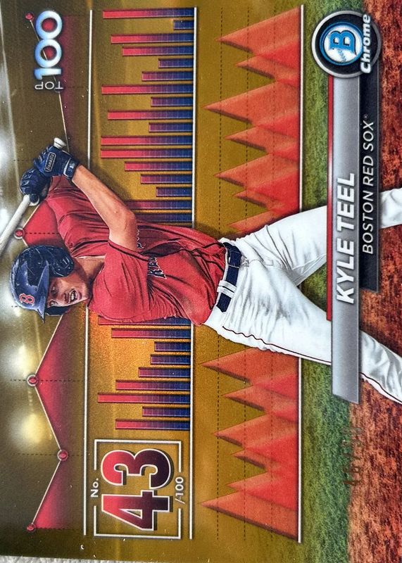 The Kyle Teel 2024 Bowman #BTP-43 Bowman Scouts' Top 100 - Gold Refractor /50 card in Raw condition has not changed in price in the last 30 days and was last sold for $4.04 .