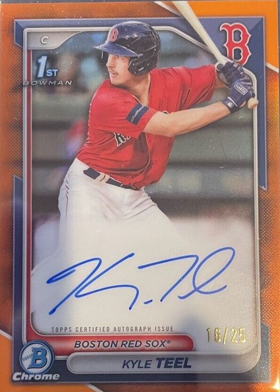 KYLE TEEL 2024 BOWMAN CHROME #CPA-KT 1ST True Orange AUTOGRAPH. /25 Red Sox
