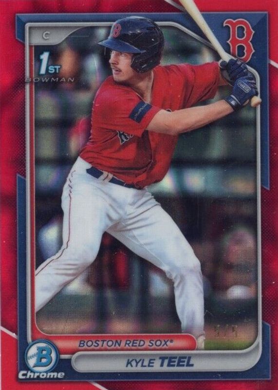 The Kyle Teel 2024 Bowman #BCP-48 Chrome Prospects - Red Lava Refractor /5 (1st) card in Raw condition has not changed in price in the last 30 days and was last sold for $306.01 .