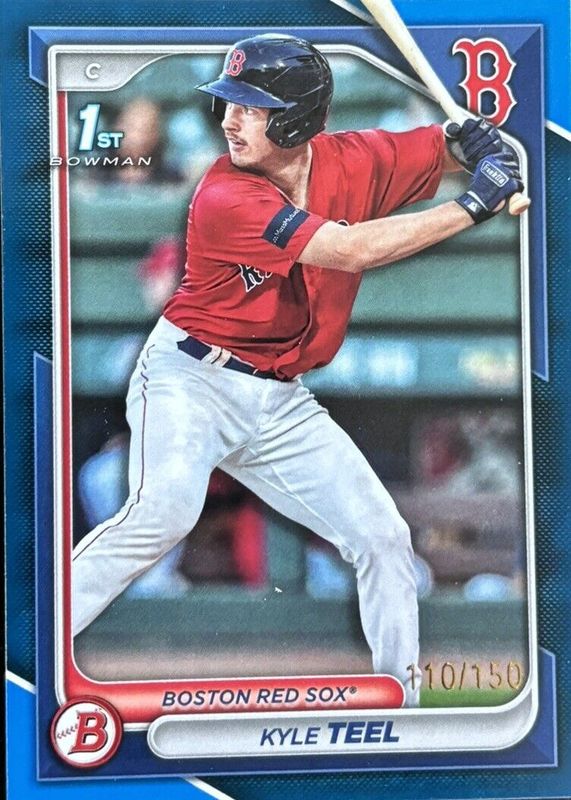 The Kyle Teel 2024 Bowman #BP-48 Paper Prospects - Blue Border /150 (1st) card in Raw condition has moved down -$0.01 (-0.1%) in the last 30 days and was last sold for $9.99 .