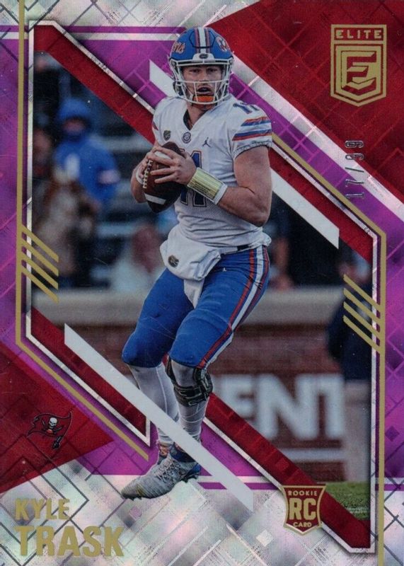 This card is 1 of 17 Kyle Trask's card variations in the 2021 Elite set being tracked by Sports Card Investor, including Base Rookie /999, Green, Pink, Aspirations Shimmer /499, and Red /399.