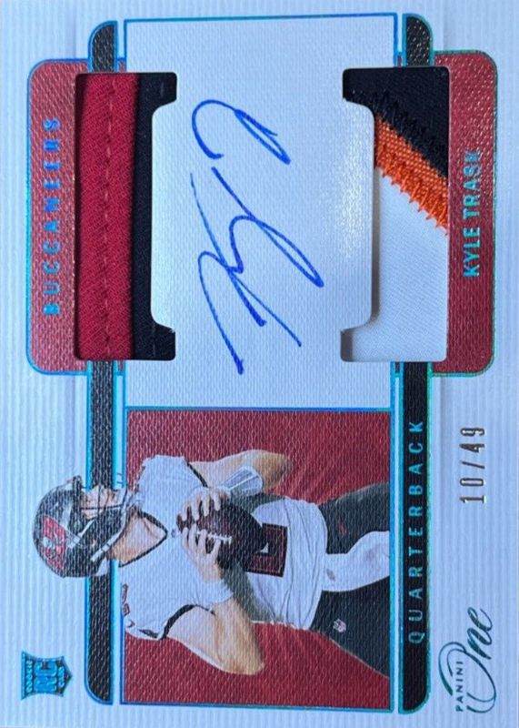 The Kyle Trask 2021 One #39 Rookie Dual Patch Auto - Blue (/49) card in Raw condition has not changed in price in the last 30 days and was last sold for $21.50 .