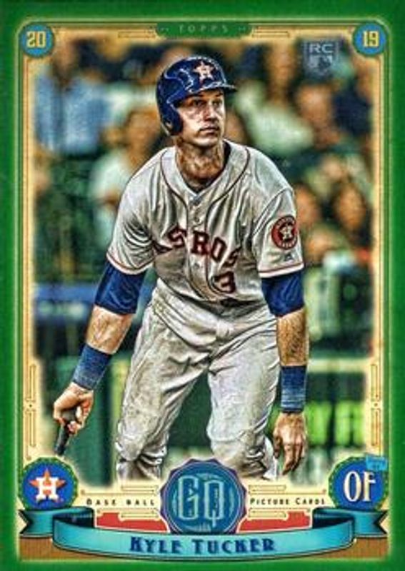 The Kyle Tucker 2019 Topps Gypsy Queen #225 Green Rookie card is 1 of 30 Kyle Tucker's card variations in the 2019 Topps Gypsy Queen set being tracked by Sports Card Investor, including Base, Bazooka Back, GQ Logo Swap, Missing Nameplate, and Purple.