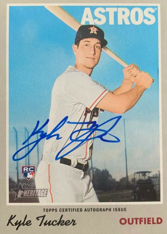 This card is 1 of 2 Kyle Tucker's card variations in the 2019 Topps Heritage set being tracked by Sports Card Investor, including Real One Autographs - Red Ink /70.
