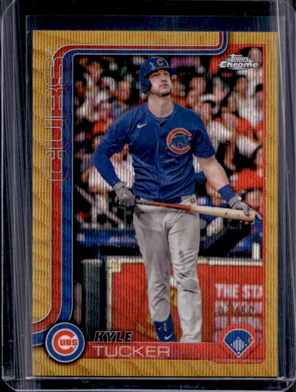 The Kyle Tucker 2025 Topps Chrome #103 Gold Wave Refractor /50 card is 1 of 52 Kyle Tucker's card variations in the 2025 Topps Chrome set being tracked by Sports Card Investor, including Base, Geometric Refractor, Lightboard Logo Variation, Negative Refractor, and Prism Refractor.